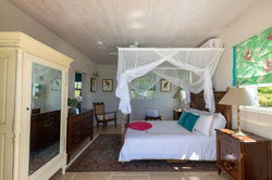 Villa Goss can comfortably accommodate up to 12 guests. The main villa features four elegantly designed bedrooms, each with its own en-suite bathroom, providing guests with the perfect blend of comfort and privacy. The bedrooms include a mix of super king-size and king-size beds for a restful stay. Every room throughout the property is air-conditioned, ensuring a cool and relaxing stay in the tropical climate.
